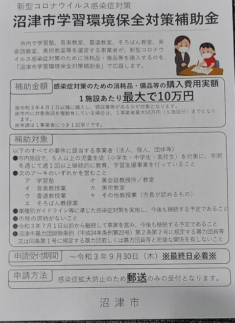 沼津市の学習環境保全対策補助金のお知らせ